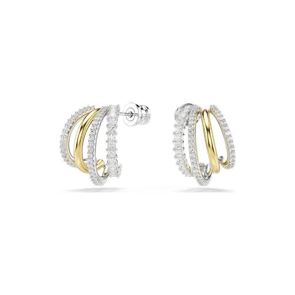 Orecchini a lobo da donna realizzati in lega di metalli con finitura dorata con cristallo bianco centrale contornato da swarovski white clear.