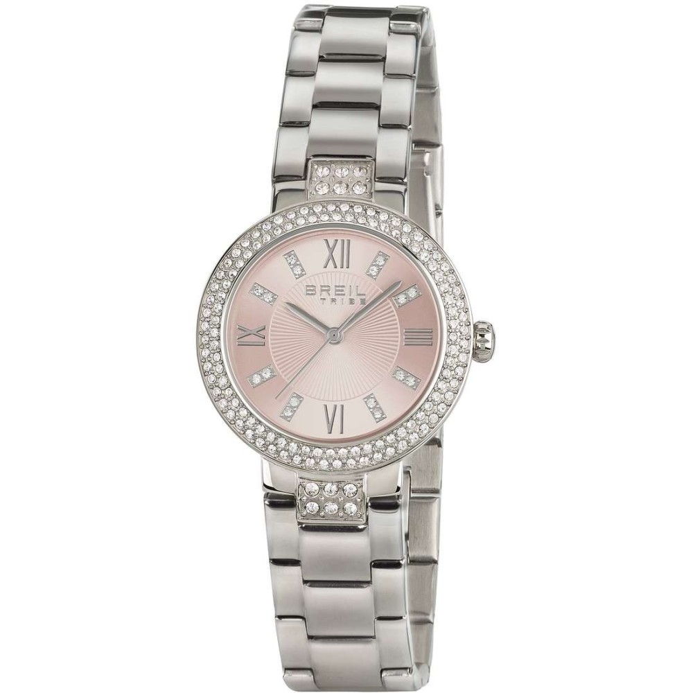 Orologio Solotempo Da Donna Di Breil Tribe Della Collezione Dancefloor. Orologio Con Cassa In Acciaio Di 32 Mm, Quadrante Rosa Sunray Con Pietre Agli Indici, Lunetta Con Pietre E Vetro Minerale. Il Bracciale È In Acciaio E Ha Chiusura Con Pulsanti. Questo Modello Ha Movimento Al Quarzo Time Module Y121 E Resistenza All'Acqua Di 3 Atm. La Referenza È Ew0256
