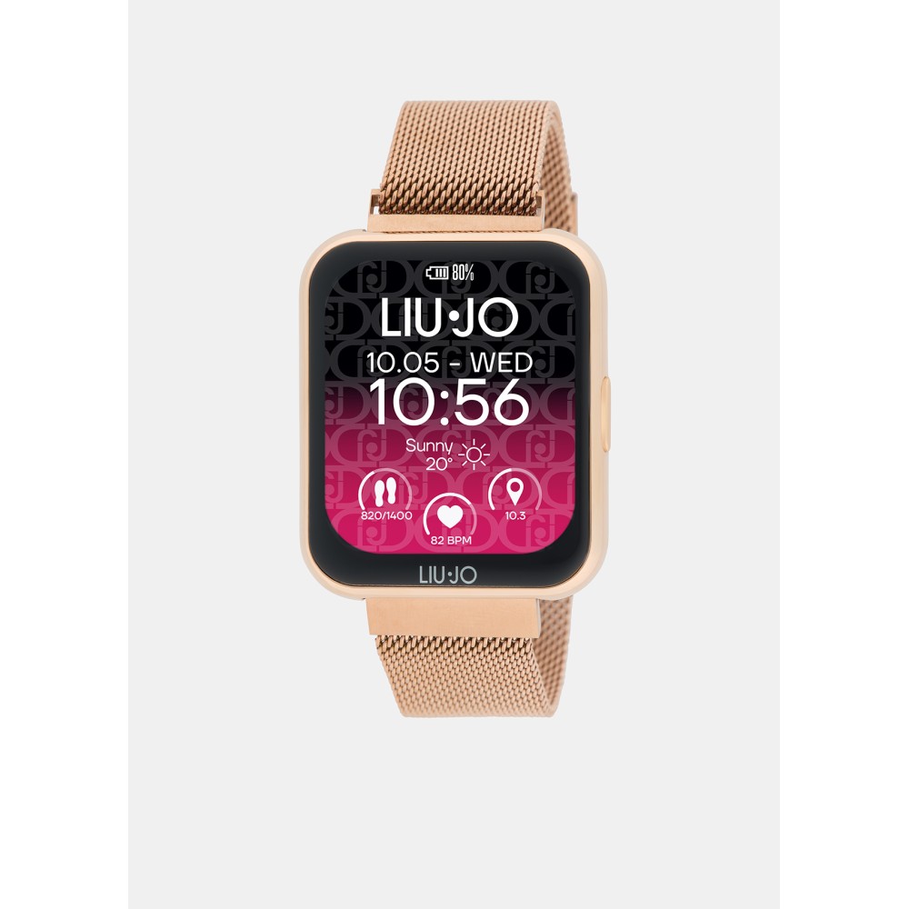 Smartwatch da donna Cassa in lega di alluminio Display full touch Impermeabilità: IP67 Cinturino in acciaio a maglia milanese Dimensioni della cassa: 35 x 42 mm Funzioni principali: Chiamata vocale tramite dispositivo Avviso notifiche Assistente vocale Sport Contapassi Contacalorie Monitoraggio del sonno Avviso sedentario Cronometro Timer Accensione dello schermo con un movimento del polso Frequenza cardiaca e pressione sanguigna Controllo remoto della musica Clicca Meteo Sveglia Trova telefono Schermo personalizzabile Monitoraggio del ciclo mestruale
