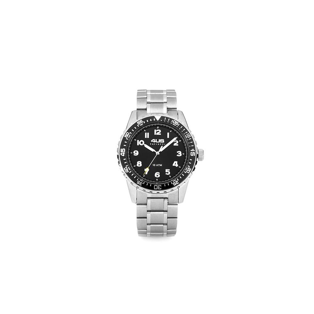 Questo orologio è interamente in acciaio e ha una cassa di 43 mm su cinturino in acciaio. Quadrante nero e ghiera girevole, con 5 atm di resistenza. Con scatola originale, certificati del brand e garanzia di 2 anni.