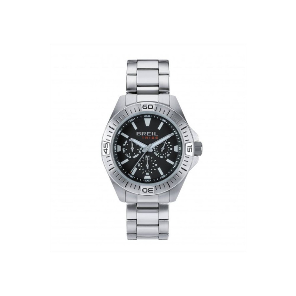 Orologio multifunzione da uomo di Breil della collezione Challange. Orologio multifunzione con movimento al quarzo mIYOTA 6P29. Ha la cassa in acciaio con finitura satinata di uno spessore di 11,5mm. La lunetta è in acciaio con dettagli verdi. Il quadrante è verde con effetto sun ray e con indici con luminous. I contatori sono neri con effetto CD ring. Ha sfere silver e vetro minerale. Il fondello è a vite. Il bracciale è in acciaio con binitura bilux. La chiusura è con pulsanti e fermaglio di sicurezza. La resistenza all'acqua è di 5atm. La misura è di 42mm. La referenza è EW0711