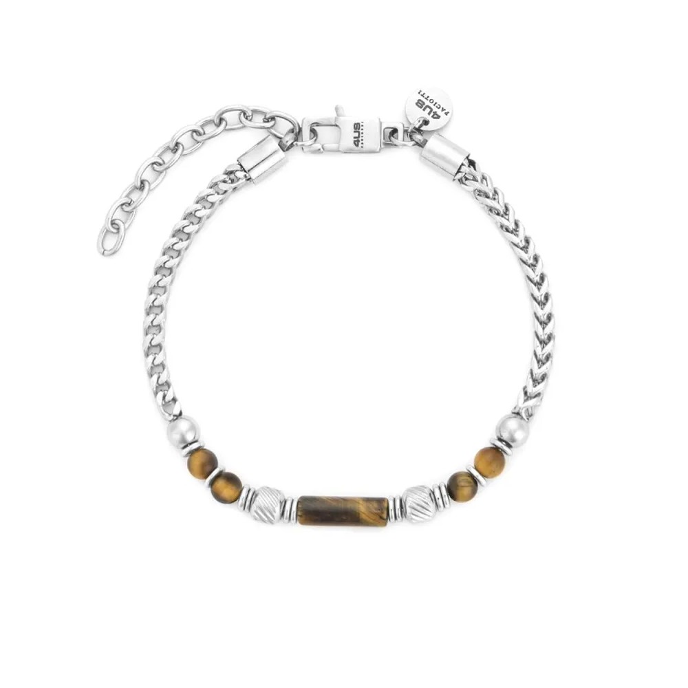 Gioiello da Uomo 4US CESARE PACIOTTI della collezione STEEL realizzato in acciaio inossidabile 316L - Il bracciale, caratterizzato da una maglia a catena, è impreziosito al centro da pietre di occhio di tigre marrone alternate a boule tonde, barilotti e rondelle - Chiusura con moschettone - Lunghezza regolabile da 18 a 21 cm - Garanzia Internazionale: 24 Mesi - Tutti i gioielli sono privi di nickel e ipoallergenici - Nella spedizione invieremo tutto il necessario per fare una confezione regalo