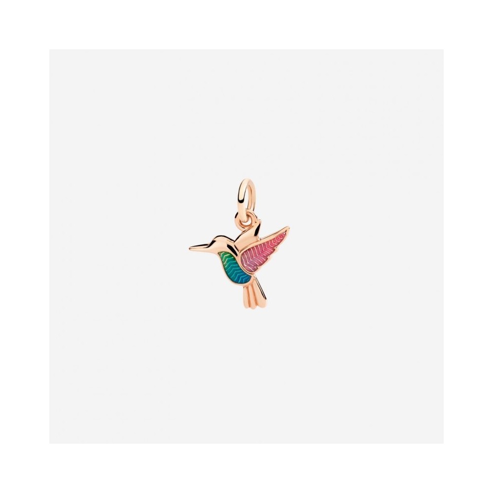 Ciondolo Colibrì in oro rosa 9K e smalto perlato con cordino nero incluso di Dodo.