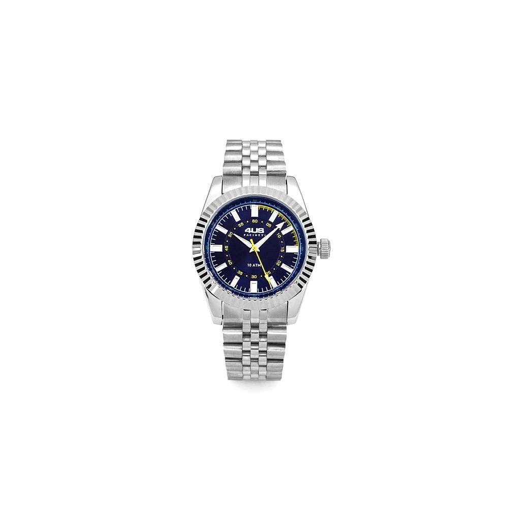 Questo orologio è interamente in acciaio e ha una cassa di 43 mm su cinturino in acciaio. Quadrante blu e ghiera girevole, con 5 atm di resistenza. Con scatola originale, certificati del brand e garanzia di 2 anni.